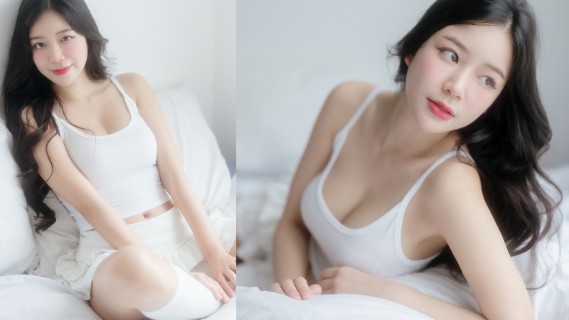 น่ารักสดใสในวันหยุดชวนง่วงหลับฝันดี ด้วยความน่ารักสไตล์เสื้อเกาะอกสีขาว