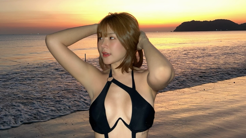น้องวาวากับชุดว่ายน้ำสีแดง
