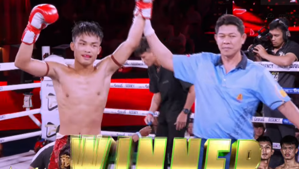 เพชรส่องแสง เพชรเจริญวิทย์ ได้จังหวะปล้ำตีแทงเข่าจน กล้ารบ รร.ธรรมศาสตร์คลองหลวง ออกอากาศไม่ดี ก่อนจะเช็คบิลด้วยศอกขวา ชนะน็อกไปอย่างเด็ดขาดใน ยกที่ 3