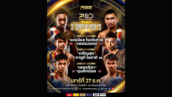 นับถอยหลังสู่ประวัติศาสตร์หน้าใหม่! เนื่องในโอกาสครบรอบ 80 ปีของการก่อตั้งสนามมวยเวทีราชดำเนิน รายการ RWS: Rajadamnern World Series เตรียมระเบิดศึกนัดใหญ่ที่สุดแห่งปี "ศึก R80 Rajadamnern Anniversary" ในวันเสาร์ที่ 27 ธันวาคมนี้! ปิดท้ายปี 2568 ด้วยการรวม 3 คู่ซูเปอร์ไฟต์ชิงแชมป์สุดยิ่งใหญ่ พร้อมโบนัสอัดฉีดสูงถึงคู่ละ 1.5 ล้านบาท รวมมูลค่าถึง 4.5 ล้านบาท!