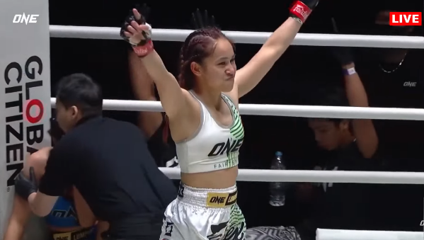 อิสไลย์ เอริกา โบโมกาว โชว์ความแข็งแกร่งเอาชนะทีเคโอ พลอยชมพู พียู.ผ้าใบ ยก 2 ในการชกมวยไทยรุ่นอะตอมเวต ในศึก ONE ลุมพินี 134