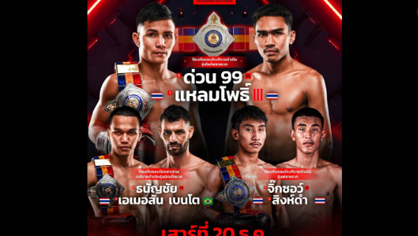 RWS จัดหนักไฟต์แตกหัก 3 คู่ชิงเข็มขัดแชมป์ราชดำเนิน นำโดย ด่วน 99 ป้องกันแชมป์กับ แหลมโพธิ์ ในวันที่ 20 ธันวาคมนี้ ก่อนมุ่งหน้าสู่ศึกใหญ่ R80