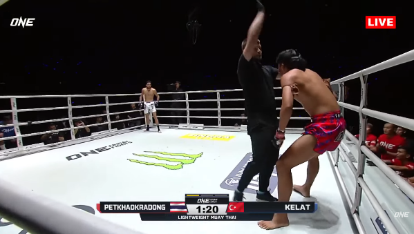 นักสู้จอมแกร่งจากตุรกี อาลี เคลาต ระเบิดฟอร์มดุซัดน็อก เพชรเขากระโดง มวยหนุ่มฟอร์มแรงของไทย คว้าชัยชนะแบบเด็ดขาดในคู่เอก ONE ลุมพินี 136