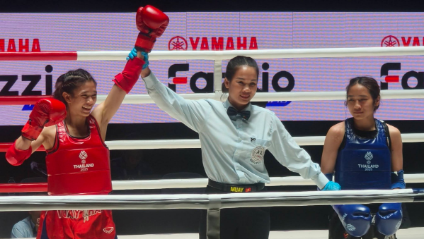 รุ่น 45 กก. หญิง: อริศรา นุ่นเอียด (มงกุฎเพชร เพชรพราวฟ้า) เปิดเกมลุย วางแข้งสลับปล้ำตีเข่าจนนักมวยมาเลเซียโดนนับ 8 ถึง 2 ครั้ง ก่อนกรรมการยุติการชกในยกแรก ชนะน็อก ดาเมีย ฮัสนา อาเซียน (มาเลเซีย)