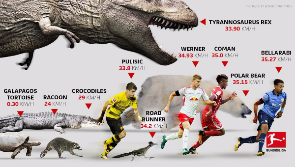 อันดับ 3 และ 4 ของนักเตะเป็น ติโม แวร์เนอร์ หัวหอกตัวเก่งทีมชาติเยอรมันของแอร์เบ ไลป์ซิก และ คริสเตียน พูลิซิส ของดอร์ทมุนด์ ตามลำดับ นอกจากนี้ ยังนำบรรดาสัตว์ต่างๆ มาเปรียบเทียบให้เห็นภาพอีกด้วย