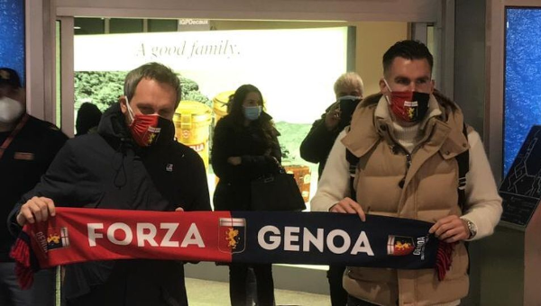 กองกลางทีมชาติฮอลแลนด์ถูกจับภาพที่สนามบิน พร้อมกับถือผ้าพันคอของ เจนัว