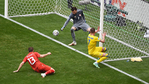 ยูเครน สามคะแนนแรกมาแล้ว เฉือนชนะ นอร์ธ มาเซโดเนีย 2-1 จากสองประตูตั้งแต่ครึ่งแรกของ อังเดร ยาร์โมเลนโก้ และ โรมัน ยาเรมชุค โอกาสลุ้นเข้ารอบเปิดกว้าง