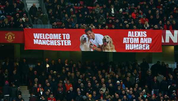 ในเกมที่ แมนฯ ยูไนเต็ด เอาชนะ ฮัดเดอร์สฟิลด์ 2-0 เมื่อวันเสาร์ที่ผ่านมา แฟนบอล ปีศาจแดง ได้เปิดตัวป้ายผ้าขนาดใหญ่ชิ้นใหม่ที่เป็นรูป อเล็กซิส กับเจ้าหมาน้อย 2 ตัว อะตอม กับ อูมเบร์ พร้อมข้อความยินดีต้อนรับสู่ แมนเชสเตอร์