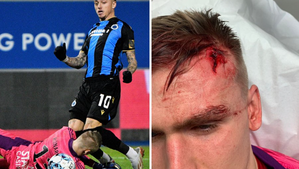 อเล็กซ์ รูนาร์สสัน นายทวาร อาร์เซน่อล ที่ปล่อยยืมตัวเล่นในเบลเยียม ได้รับบาดเจ็บหัวแตกเป็นแผลสุดสยอดหลังปะทะกับหัวเข่าของคู่แข่ง