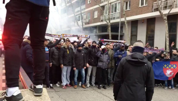 แฟนบอล เปแอสเช ได้รวมตัวกันกลางกรุงมาดริด ก่อนเกม ยูฟ่า แชมเปี้ยนส์ ลีก รอบ 16 ทีมสุดท้าย เกมแรกที่ทาง เรอัล มาดริด จะเปิดสนาม ซานติอาโก้ เบร์นาเบว รับมือทีมดังจากฝรั่งเศส