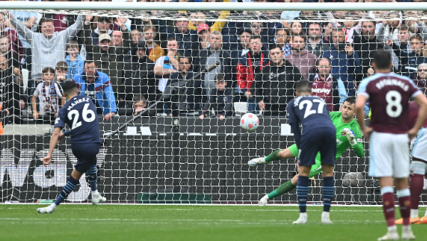 แมนเชสเตอร์ ซิตี้ ตามหลัง 0-2 ในครึ่งแรก ไล่ตามตีเสมอ เวสต์แฮม ยูไนเต็ด 2-2 และเกือบแซงชนะด้วย แต่ ริยาด มาห์เรซ พลาดจุดโทษท้ายเกม