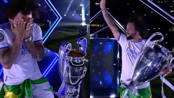 มาร์เซโล่ ถึงกับหลั่งน้ำตาในงานเฉลิมฉลองความสำเร็จของ เรอัล มาดริด ในฤดูกาลนี้ เพราะจะเป็นการอำลาทีมของแบ็กซ้ายชาวบราซิล