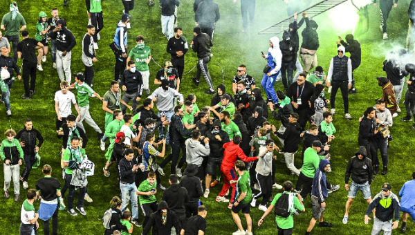 หลังจบเกมเกิดเหตุวุ่นวายขึ้นเมื่อแฟนบอล แซงต์ เอเตียน ได้พังอัฒจันทร์วิ่งลงมาในสนามและทำร้ายแฟนบอลตัวเองเพราะผิดหวังที่ต้องตกชั้น