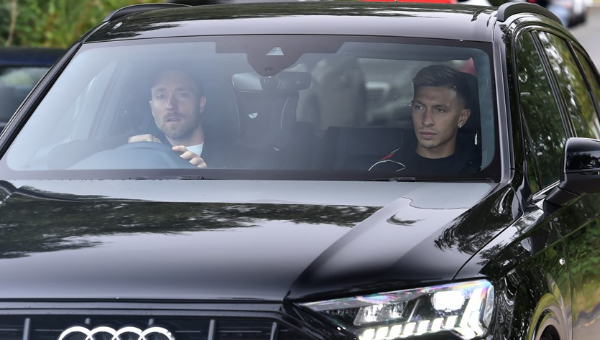 สกายสปอร์ต สื่ออังกฤษ เปิดเผยภาพที่ เอริคเซ่น มิดฟิลด์ทีมชาติเดนมาร์กขับรถ 'เอาดี้' โดยมี มาร์ตีเนซ ปราการหลังทีมชาติอาร์เจนตินา นั่งเคียงข้างมาถึงที่ แคร์ริงตัน สนามซ้อมของ แมนเชสเตอร์ ยูไนเต็ด เพื่อลงซ้อมกับเพื่อนร่วมทีมใหม่เป็นวันแรก