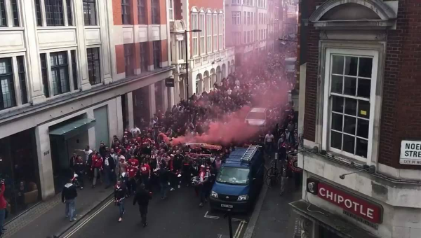 แฟนบอลโคโลญจน์นับพันประกาศศักดา กลางกรุงลอนดอนก่อนเกมที่ทีมรักของพวกเขาจะลงดวลกับ อาร์เซน่อล คืนนี้