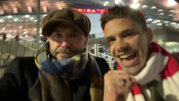 อดีตแข้งจอมฟรีคิกเข้าร่วมชมเกมร่วมกับ โรเมโอ เบ็คแฮม ลูกชายคนกลางที่เป็นแฟนบอล อาร์เซน่อล และเคยเป็นอดีตนักเตะเยาวชนของทีมปืนใหญ่ด้วย