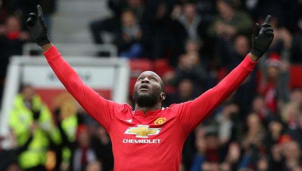 โรเมลู ลูกากู กองหน้าตัวเก่งของ แมนเชสเตอร์ ยูไนเต็ด ออกมาแสดงความยินดีที่ทำประตูใน พรีเมียร์ลีก ครบ 100 ลูกได้สำเร็จ