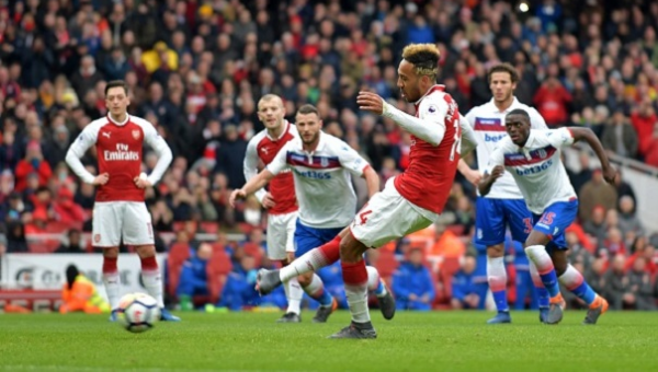 อาร์เซน่อล ต้องรอประตูแรกถึงนาที 75 จากจุดโทษของ ปิแอร์-เอเมริก โอบาเมยอง ที่ยิงคนเดียวสองประตู พาทีมเอาชนะ สโต๊ค 3-0 ในเกมพรีเมียร์ลีก วันอาทิตย์