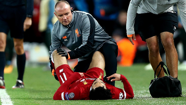 กองหน้าชาวอียิปต์เดินออกมาข้างสนามให้ทีมแพทย์ดูอาการบาดเจ็บหลังจากเกมผ่านไป 8 นาทีของครึ่งหลังจนต้องโดนเปลี่ยนตัวเองในเกมที่ไล่ถล่ม แมนเชสเตอร์ ซิตี้ 3-0 ในศึกยูฟ่า แชมเปี้ยนส์ ลีก รอบก่อนรองชนะเลิศ นัดแรก