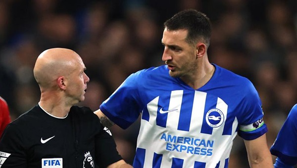 ผู้ตัดสิน แอนโธนี่ เทย์เลอร์ ชูใบเหลืองให้กับ ดังค์ หลังจากการตั้งคำถามถึงการตัดสินตอนเสียจุดโทษให้กับ น็อตติงแฮม ฟอเรสต์ ซึ่งเกิดขึ้นหลังจากวีเออาร์เรียกให้ดูภาพช้าทางหน้าจอมอนิเตอร์ แต่เหตุการณ์ไม่จบแค่นั้น เพราะกัปตันทีม ไบรท์ตัน ยังพูดอะไรบางอย่างที่ทำให้ใบแดงถูกควักออกจากกระเป๋า