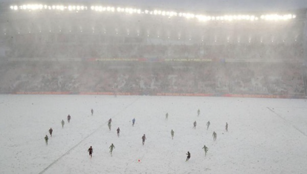 เหตุการณ์เลวร้ายไม่จบแค่นั้น หลังจากผู้ตัดสินเป่าเริ่มเกมได้เพียง 4 นาที ก็เกิดฟ้าผ่า ทำให้เกมถูกหยุดลงชั่วขณะ และเมื่อกลับมาเล่นกันต่อหลังผ่านไปอีกราวๆ หนึ่งชั่วโมง สภาพสนามก็ถูกปกคลุมไปด้วยหิมะจนขาวโพลนหมดแล้ว