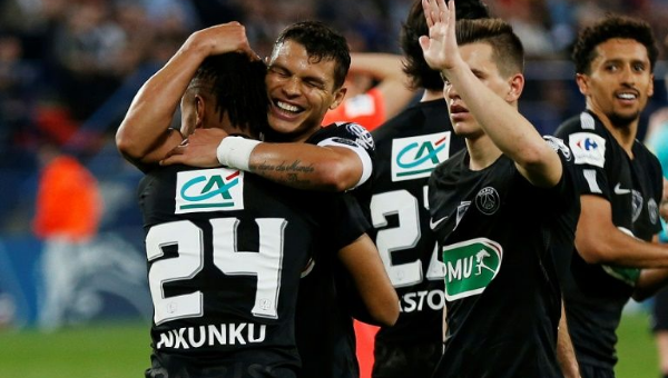 ติอาโก้ ซิลวา ปราการหลังของ ปารีส แซงต์-แชร์กแมง โวทีมสมควรเข้ารอบชิงชนะเลิศฟุตบอลเฟร้นช์ คัพ หลังจากบุกเอาชนะ ก็อง 3-1 ในเกมรอบรองชนะเลิศเมื่อคืนวันพุธที่ผ่านมา