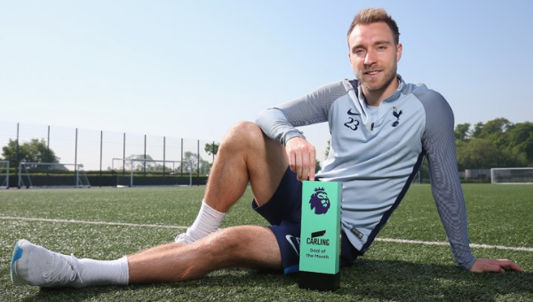 เอริคเซ่น ที่มีส่วนร่วมกับ 5 ประตูของ ไก่เดือยทอง ในเดือนเมษายน แบ่งเป็น 3 ประตู กับ 2 แอสซิสต์ หนึ่งในประตูที่ทำได้เป็นลูกยิงไกลในเกมบุกชนะ เชลซี 3-1 ที่ สแตมฟอร์ด บริดจ์ ซึ่งมิดฟิลด์ทีมชาติเดนมาร์กตะบันเท้าขวาลูกส่ายไปส่ายมาลอยละลิ่วผ่าน วิลลี่ กาบาเยโร่ มุดเสียบใต้คาน