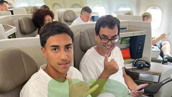 วิตอร์ ไรส์ ปราการหลังหนุ่มจาก พัลเมรัส แชะภาพกำลังขึ้นเครื่องบินเดินทางเข้าสหราชอาณาจักร เพื่อนำสู่ขั้นตอนท้ายเตรียมย้ายสู่สมาชิกใหม่ แมนฯ ซิตี้