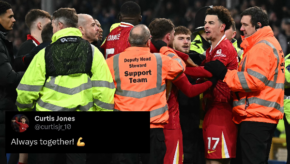 เคอร์ติส โจนส์ โพสต์ข้อความใน X เพื่อส่งสารถึงแฟนบอลลิเวอร์พูล หลังเหตุการณ์ใบแดงในศึกเมอร์ซี่ไซด์ ดาร์บี้ ที่กูดิสัน พาร์ค