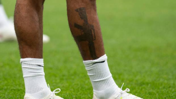 ราฮีม สเตอร์ลิ่ง สตาร์ทีมชาติอังกฤษโชว์รอยสักล่าสุดซึ่งเป็นรูปปืนที่ขาขวาลงทางอินสตราแกรมส่วนตัวเมื่อวันจันทร์ที่ผ่านมา