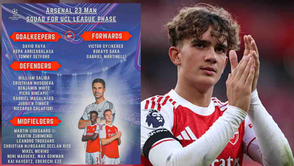 อาร์เซน่อล ยืนยันรายชื่อผู้เล่นยูฟ่า แชมเปี้ยนส์ ลีกสำหรับรอบลีก เฟสแล้ว โดยมี แม็กซ์ ดาวแมน ไอ้หนูวัย 15 ปี ติดโผ ขณะที่ กาเบรียล เชซุส ไม่มีชื่อติดทีม