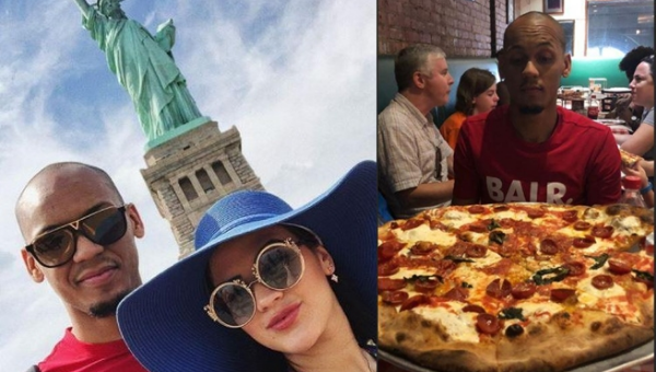 ฟาบินโญ่ กองกลางตัวใหม่แกะกล่องของ ลิเวอร์พูล ใช้วันพักผ่อนกับภรรยาด้วยการไปเที่ยวนิวยอร์ก พร้อมโชว์พิซซ่าจานโต