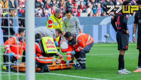 อเล็กซ์ กรีมาลโด้ ถูกหามลงเปลออกจากสนามในช่วงท้ายครึ่งแรกหลังมีอาการบาดเจ็บที่ใบหน้าจากการปะทะกับเพื่อนร่วมทีม