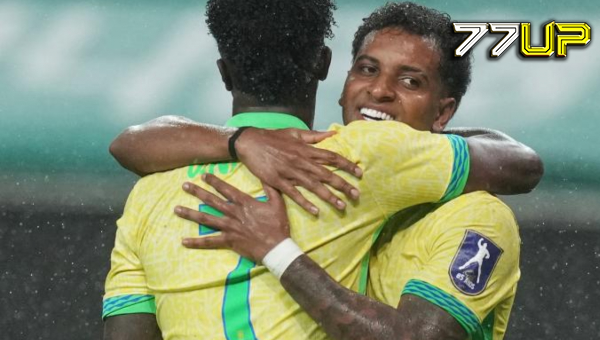นาที 77 บราซิล ปิดกล่อง 5-0 จากการโต้กลับเร็ว มาเตอุส กุนญ่า แทงขึ้นหน้าจากแดนตัวเองถึง วินิซิอุส Jr.วิ่งอ้อมแซงไปเลี้ยงจี้เข้ากรอบ ดึงจังหวะล่อเป้า
