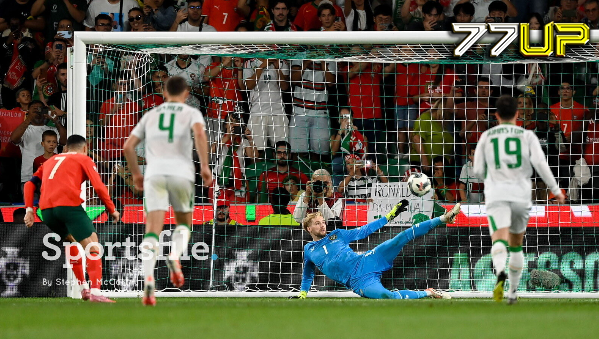 นาทีที่ 72 ฝอยทองรุกหนัก ฟรานซิสโก้ ตรินเกา สับไกด้วยซ้าย บอลโดนแขน ดารา โอเช ในเขตโทษ ผู้ตัดสินเป่าเป็นจุดโทษ โรนัลโด้รับหน้าที่สังหาร ก่อนซัดไปกลางประตู เคลเลเฮอร์ล้มผิดทางไปแล้ว แต่ยังใช้ขาสกัดออกได้เหลือเชื่อ ไอริชรอดตายเหลือเชื่อ