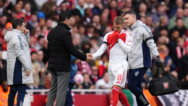 ดาวเตะทีมชาตินอร์เวย์ได้รับบาดเจ็บเอ็นหัวเข่าด้านข้าง (เอ็มซีแอล) ระหว่างเกมที่เอาชนะ เวสต์แฮม เมื่อต้นเดือน และ มิเกล อาร์เตต้า ผู้จัดการทีมกล่าวว่านักเตะอาจต้องพักจนกว่าจะถึงช่วงเบรกทีมชาติเดือนพฤศจิกายน