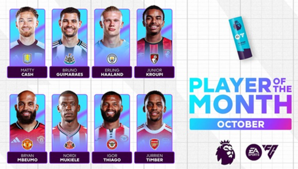 เว็บไซต์อย่างเป็นทางการของพรีเมียร์ลีก ประกาศรายชื่อ 8 ผู้เล่นที่เข้าชิง 'อีเอ สปอร์ตส์ เพลเยอร์ ออฟ เดอะ มันธ์ อวอร์ด' หรือรางวัลผู้เล่นยอดเยี่ยมของพรีเมียร์ลีก ประจำเดือนตุลาคม ปี 2025 มีชื่อ เอ็มเบอโม่ หนึ่งในตัวเต็ง