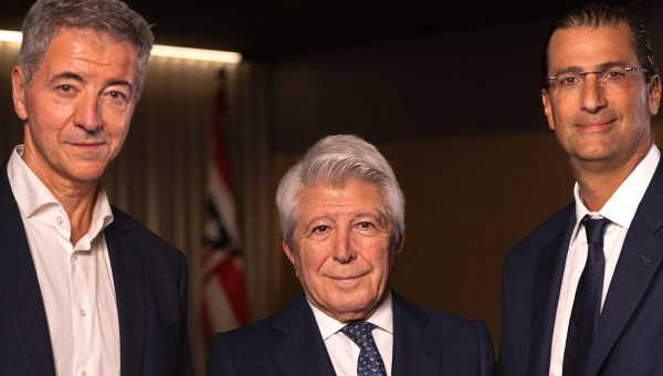 ร็อบ จีโวเน่ (ขวา) หุ้นส่วนของ เอเอสซี กลุ่มทุนที่เข้ามาถือหุ้นใหญ่ของ แอตเลติโก มาดริด ยังคงมอบหน้าที่ให้ มิเกล อังเคล คีล มาริน (ซ้าย) และ เอ็นรีเก้ เซเรโซ่ (กลาง) บริหารสโมสรต่อไป