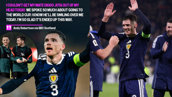 แอนดี้ โรเบิร์ตสัน กัปตันทีมชาติสกอตแลนด์ ได้กล่าวเปิดใจถึงความรู้สึกที่ผสมผสานระหว่างความดีใจและความเศร้า โดยยกความสำเร็จครั้งนี้ให้กับ ดีโอโก้ โชต้า อดีตเพื่อนร่วมทีม ลิเวอร์พูล ผู้ล่วงลับจากอุบัติเหตุเมื่อกลางปี