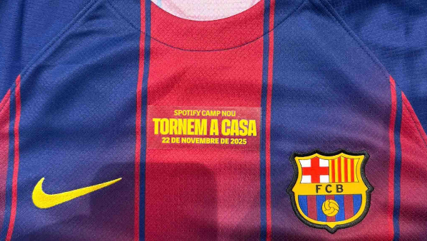 ดีไซน์นี้ประกอบด้วยรายละเอียดเฉพาะที่บ่งบอกถึงช่วงเวลาการเปิดสนามอีกครั้ง ข้อความ "Spotify Camp Nou" จะปรากฏด้วยตัวอักษรขนาดเล็กที่ด้านบนของแผ่นแปะ ขณะที่วันที่ของการแข่งขัน "22 พฤศจิกายน 2025" จะถูกจารึกไว้ด้านล่าง