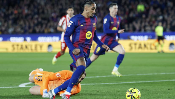 ราฟินญ่า ทำประตูนำ บาร์เซโลน่า ตีเสมอ 1-1 ก่อนทัพอาซูลกราน่าจะแซงคว้าชัยเหนือ แอตเลติโก มาดริด 3-1