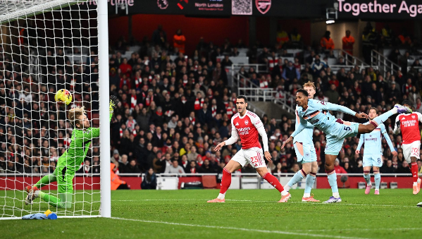จ่าฝูงลุยต่อ นาทีที่ 17 มาร์ติน โอเดการ์ด จ่ายให้มาดูเอเก้สับไกด้วยซ้าย ควีวิน เคลเลเฮอร์ป้องกันไว้ได้ อึดใจต่อมา กาเบรียล มาร์ติเนลลี่ เปิดให้ไวท์ที่อยู่ทางขวาเขตโทษ ซัดหลุดเสาขวาออกหลัง