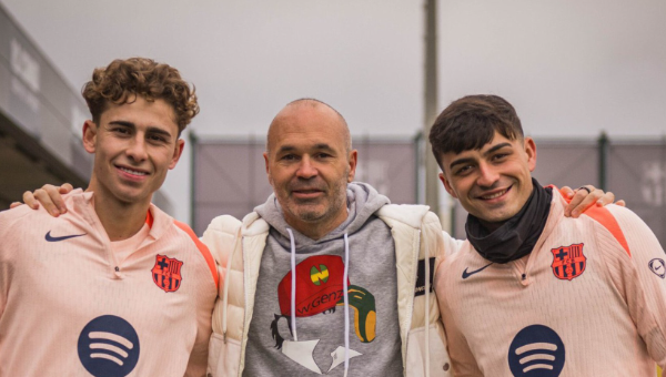 เฟร์มีน โลเปซ (ซ้าย) กลับมาลงฝึกซ้อมเมื่อวันพฤหัสฯพร้อมต้อนรับการมาเยือนของตำนานสโมสรอย่าง อันเดรส อีเนียสต้า