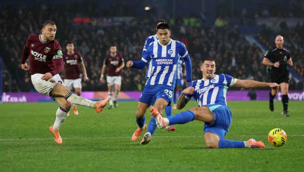 ไบรท์ตัน เก็บคะแนนในบ้านได้หวุดหวิด หลังไล่ตีเสมอ เวสต์แฮม 1-1 ในช่วงทดเจ็บจากการยิงของ จอร์จินโญ่ รุตแตร์