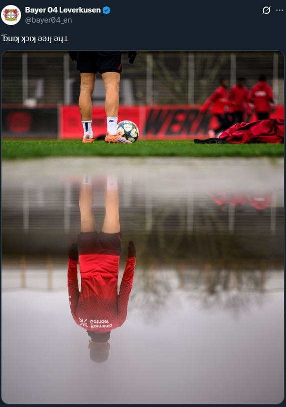แต่ล่าสุด เลเวอร์คูเซ่น อัปเดตความพร้อมก่อนเกมยูฟ่า แชมเปี้ยนส์ ลีก ที่จะเปิดรังดวล นิวคาสเซิ่ล ในวันพุธที่ 10 ธันวาคมนี้ โดยโพสต์โภาพของ กรีมัลโด้ ยืนหันหลังพร้อมแคปชั่นว่า "ราชาลูกฟรีคิก" (The free kick king)