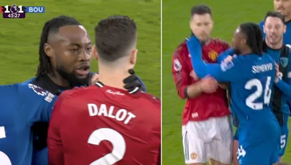 เหตุเกิดท้ายครึ่งแรกที่ โอลด์ แทร็ฟฟอร์ด ทั้งคู่กระแทกกันตอนกองหน้า บอร์นมัธ โดดกลางอากาศ แล้วลงมาฟาดที่พื้นทาง เซเมนโย่ หัวร้อนบีบคอแข้งโปรตุกีสทันที ดีว่าทีมเมต ‘เดอะ เชอร์รี่ส์’ มาแยกออกไปได้