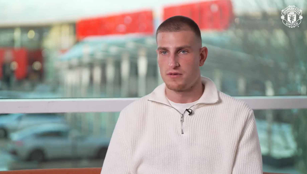 แข้งหนุ่มมุ่งหน้าเข้าสู่ห้องสื่อที่สนามฝึกซ้อมแคร์ริงตันของแมนฯ ยูไนเต็ด ที่เต็มไปด้วยพลัง อย่างที่คุณคาดหวังจากนักฟุตบอลอาชีพวัย 22 ปี