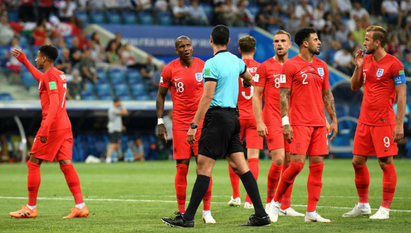 ขณะเดียวกันในเกม อังกฤษ ก็มีจังหวะปะทะในกรอบโทษ แฮร์รี่ เคน โดนขวางการเล่นแต่กลับโดนปฏิเสธ โดยทางนายใหญ่จากแดนผู้ดีรับงงกับการทำหน้าที่ของผู้ตัดสินในเกมนี้