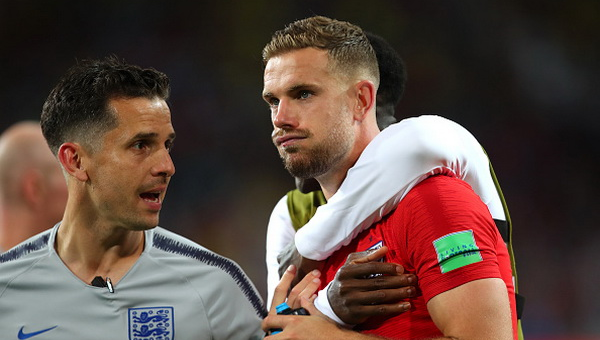 จอร์แดน เฮนเดอร์สัน กองกลางทีมชาติอังกฤษออกอาการโล่งอกที่ทัพสิงโตเอาชนะโคลอมเบียในช่วงดวลจุดโทษได้ แม้ตัวเองจะสังหารพลาดก็ตามที