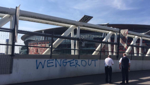 ข้อความของแฟนบอลหัวเสียยังคงเป็นประโยคฮิต "Wenger Out" หรือ "เวนเกอร์ออกไป" ขณะที่สโมสรอาร์เซน่อลก็ได้ส่งเจ้าหน้าที่มาลบและทำความสะอาดเป็นที่เรียบร้อย